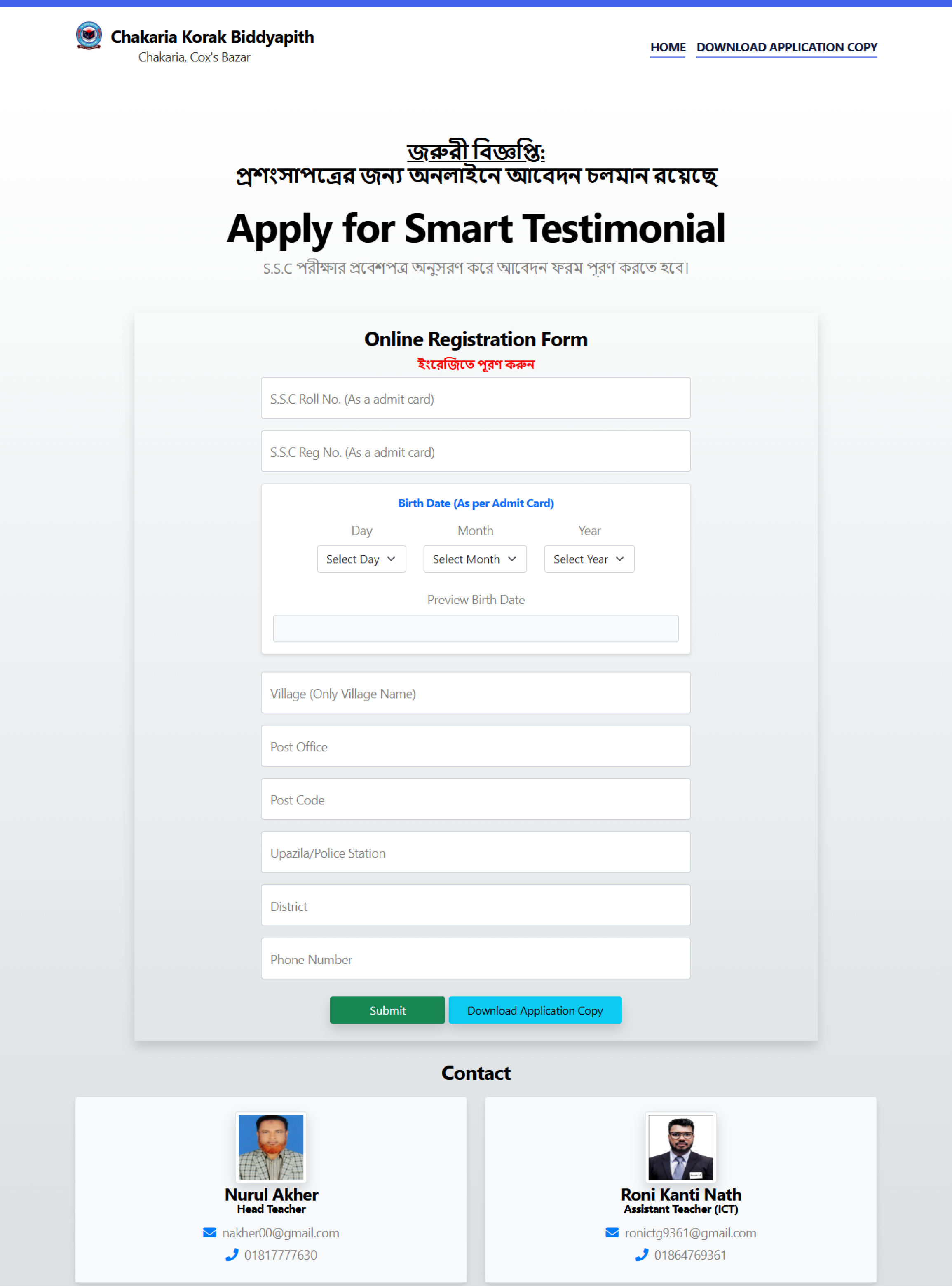 ✔️ শিক্ষার্থী / অফিসে, কম্পিউটারে বা মোবাইল ফোনে একটি সিম্পল ফরম পূরণ করবে, সাথে সাথে প্রশংসাপত্র রেডি হয়ে যাবে।