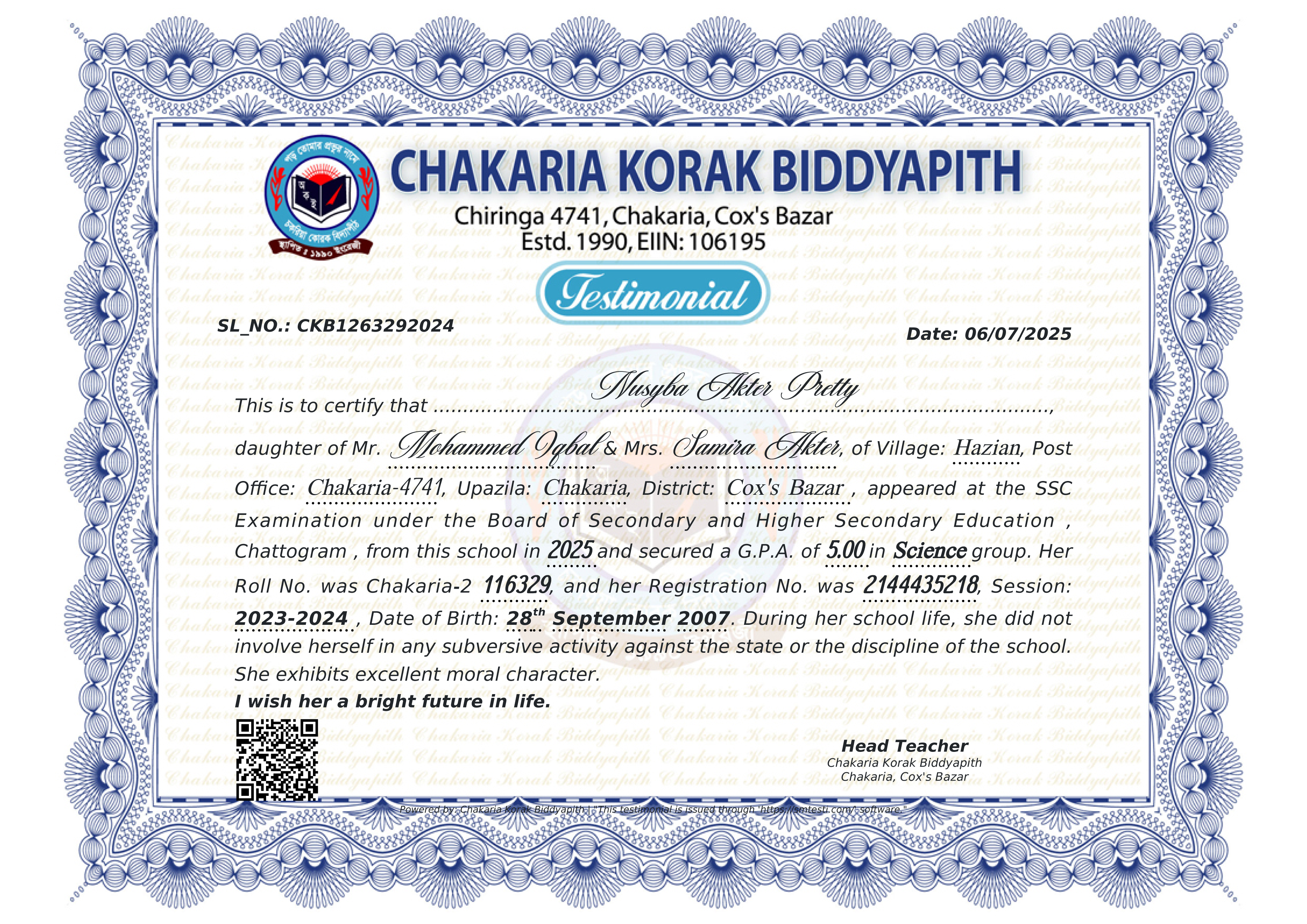 💁‍♀️ প্রশংসাপত্রে QR Code থাকায় এটি অনলাইনে যাচাই করতে পারবে খুব সহজে।